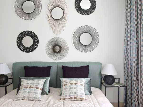 Зеркала добавят таинственности, и визуально раздвинут границы стен, а зеркальные фасады шкафов делают массивную мебель практически незаметной. Модной тенденцией стало применять стеклянные прикроватные столики вместо привычных тумб.