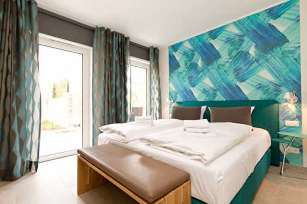 После того, как подобран правильный фоновый оттенок, можно подчеркнуть современность дизайна спальни следующими интерьерными решениями: