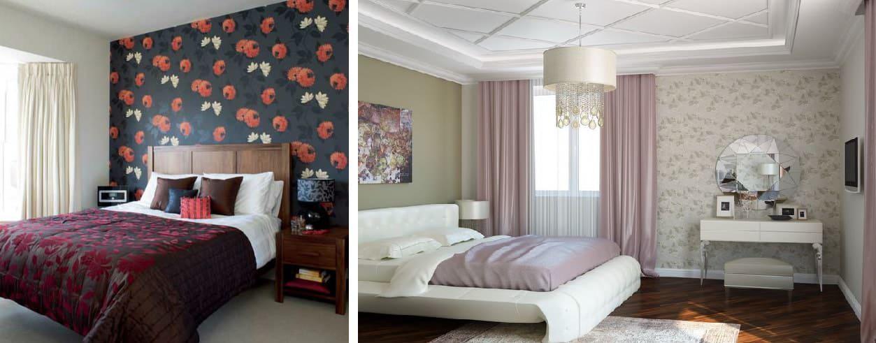 Интерьер спальни с обоями двух видов: как комбинировать