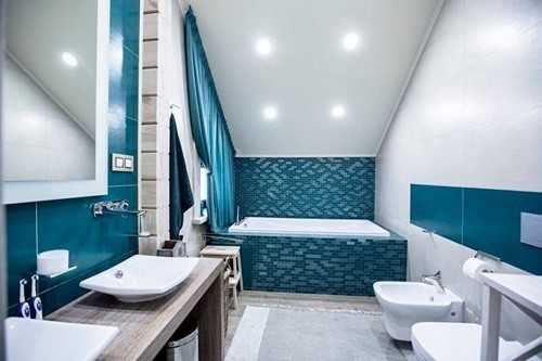- Подвесные унитазы экономят место, вносят современные нотки в интерьер, а угловые мини — раковины функциональны и оригинальны.