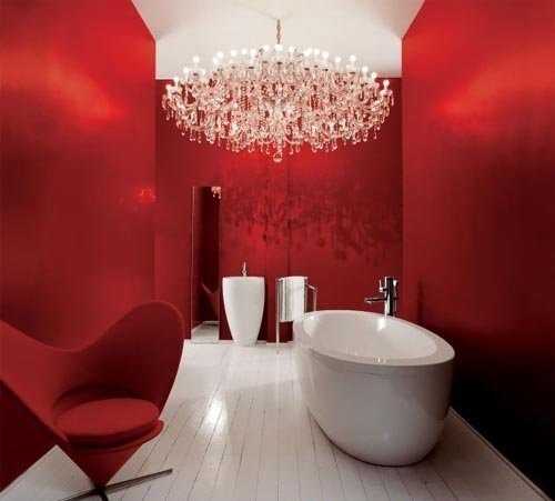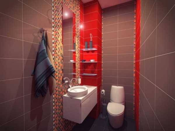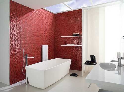 Это классика отделки. По законам Фен-шуй, в туалете должен присутствовать красный цвет. Не обязательно как основной, можно в виде акцентов.