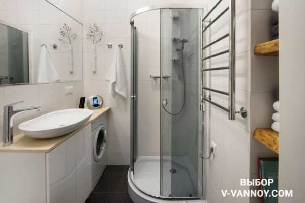 - небольшую стиральную машинку с минимальным уровнем вибрации – на полке за унитазом и бачком;