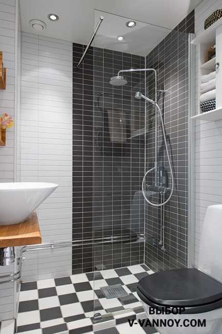 - уютный душевой уголок вместо ванны — очень удобно, стильно и помогает сделать маленькую комнату просторнее;