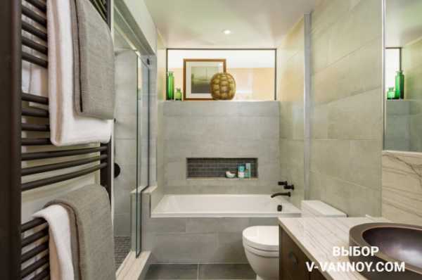 - перегородки и ниши — удел больших ванных, но если получается «безболезненно» вписать в крохотное пространство нишу, то смело делайте это.