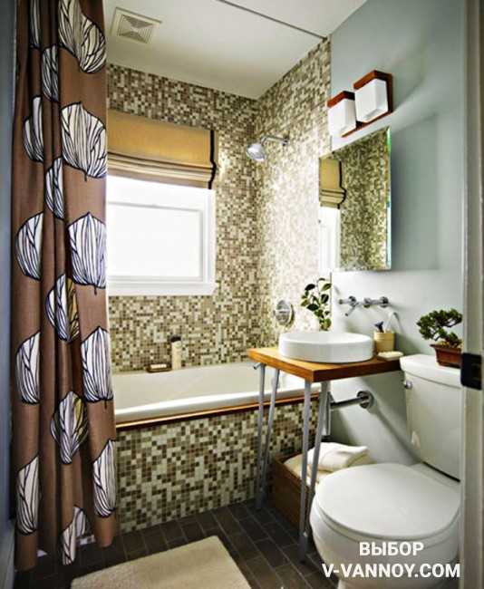 - мозаичное оформление душевой зоны — красивое выделение участка позволяет даже в маленькой комнате организовать логичное функциональное зонирование;