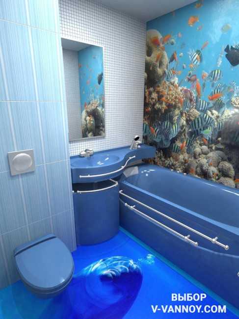 Полы можно сделать наливные, с мотивом на тему рыб или ракушек.