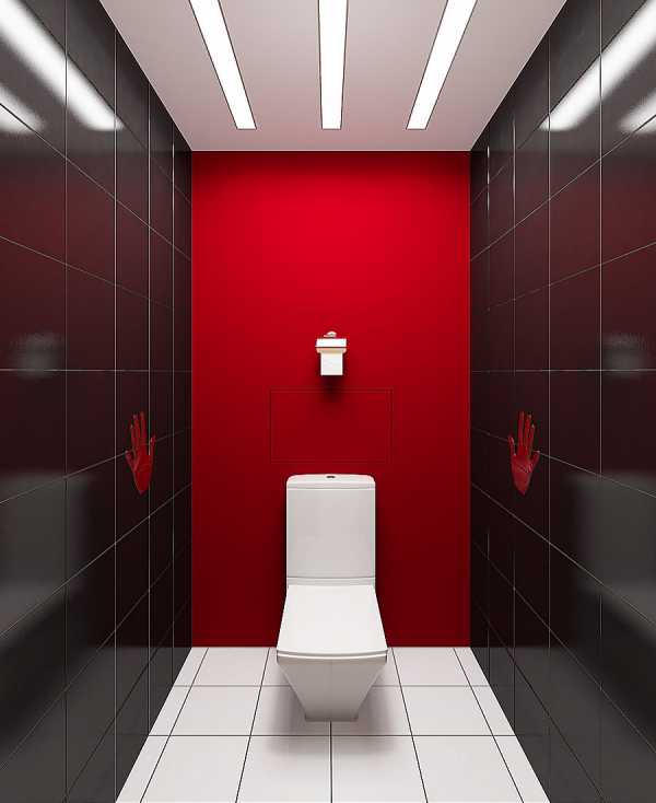 Но можно поэкспериментировать к красно-черной гамме, получится модный дизайн туалета 2018. Еще больше оригинальных примеров – в нашей фотогалерее.