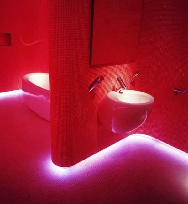 Освещение туалетных комнат – последний штрих удачного дизайна и одновременно способ замаскировать минусы помещения – вытянутую конфигурацию, малую площадь. Освещение туалета должно быть мягким, рассеянным и отраженным светом. Светильники выбирают настенные – бра или точечную подсветку, а размещают осветительные приборы не только на потолках и стенах, но и на полочках, в плинтусах, в плитах пола. Зеркало, обрамленное бра – классический туалетный декор. Для небольших туалетов массивные приборы освещения противопоказаны, но для просторных комнат могут добавить роскоши и элегантности. Интересны неоновые светодиодные подсветки по плинтусу в маленьких туалетах.