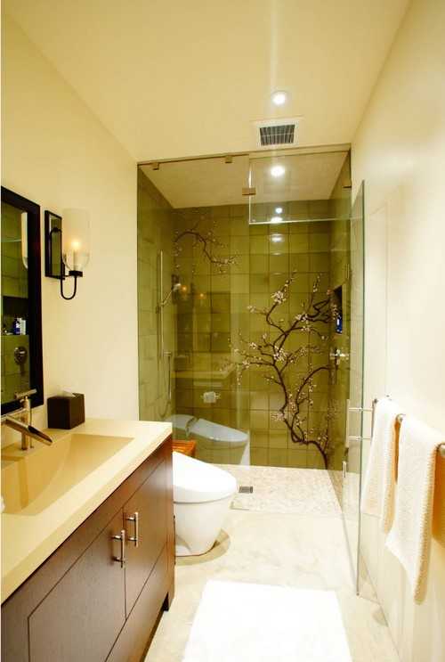 Что касается отделки совмещенных санузлов, то здесь для дизайна – множество вариантов, а дизайнерские фантазии можно осуществлять без границ. Классика, пафосное барокко и рококо, скромный и нежный Прованс, винтажные стили согласно предпочтениям владельцев туалета. Для просторного совмещенного санузла отличная идея – зонирование декоративной ширмой: зона туалетной и ванной будет уютно и стильно разграничена. Если в подобном санузле вместо ванны (или вместе с ней) установлена душевая кабина, мини-сауна или другое дополнение, то сантехприборы – унитаз и раковину выбирают с учетом экономии места, в подвесных вариантах.