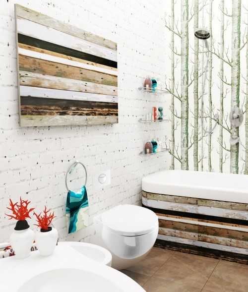Тренд этого года – использование самого дерева либо материалов, которые его имитируют в дизайне туалета. Самый простой, но от этого не менее стильный способ обыграть эту текстуру – выложить ими заднюю стенку. Можно применять, к примеру, плитку «под дерево» либо ламинат с пластиковыми замками. С паркетом стоит экспериментировать только если у вас в санузле очень хорошая вентиляция.
