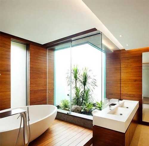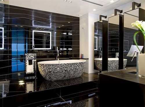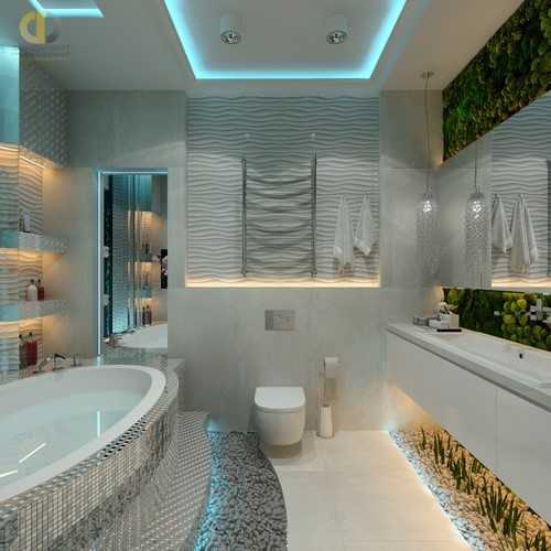 Модный дизайн интерьера ванной большого размера дарит безграничные возможности для экспериментов, ведь ее можно оснастить не только необходимыми коммуникациями и оригинальной сантехникой, но и поиграть с декором, вариантами интерьера, даже картины и текстиль выбрать для ванной.