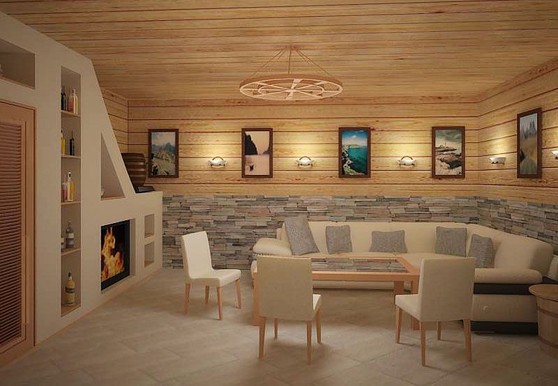 Комната отдыха в бане, дизайн и интерьер, отделка, проекты бань