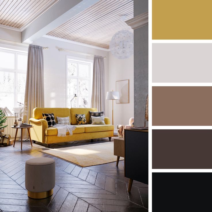 Приглушенный горчично-желтый хорошо сочетается с коричневыми акцентами и другими нейтральными или землистыми тонами. [От Marij Hessel]Если вам нужны дополнительные советы по работе с желтым, вот еще несколько идей о цветах, которые сочетаются с желтым.