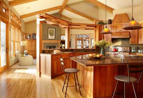 Для американского стиля коричневые оттенки необходимо выбирать как светлых тонов, так и темных и сочетаться между собой, создавая контраст. Для этого стиля характерен простор и хорошая освещенность интерьера.