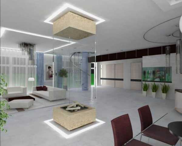 Стиль хай-тек не подразумевает использование декора. Украшением зала становятся сложные системы освещения, порождающие нетривиальные сочетания света и тени. Мебель, которую используют в рамках стиля хай-тек – лаконичная, сдержанных цветов.