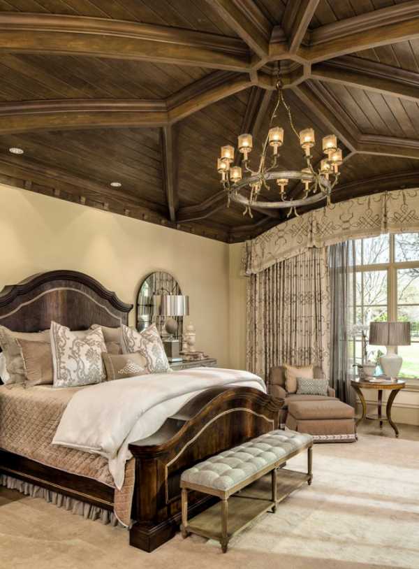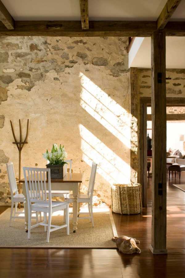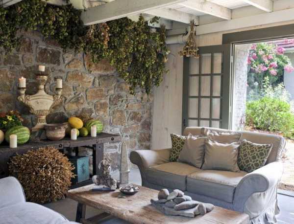 Натуральный камень на стене и древесина на потолке – особенности стиля Прованс в комнате