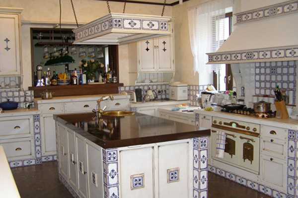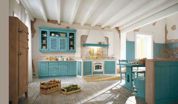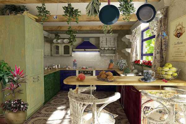 Из всех домашних помещений, оформляемых в духе прованс, кухня получается, наверное, самой симпатичной. Её интерьер никогда не выглядит скучно и безлико, хотя на стенах все также присутствует грубая фактура отделки, а гарнитур поражает своей неотесанностью. Настоящую пикантность обстановке придают римские шторы, по поверхности которых струится цветочный орнамент или фруктовый рисунок, и декоративные элементы в виде медной утвари, расставленные по кованым полкам. Но самым ярким впечатлением и штрихом стиля прованс в кухонном интерьере станет плита, стилизованная под старинный очаг с вытяжкой в той же старинной форме. Кухня получается настолько уютной, что уходить из неё совершенно не хочется даже тогда, когда нет необходимости что-либо готовить.