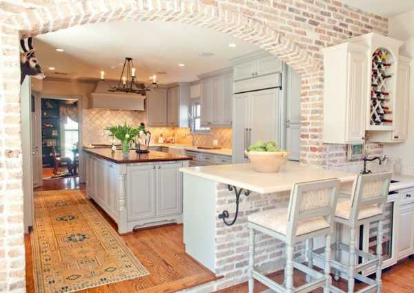 - Присутствие на стенах включений отделки под кирпич или имитации каменной кладки.
