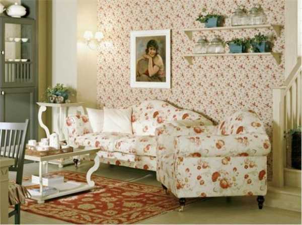 Стены. Лучше всего их оштукатурить (можно использовать фактурные, зернистые составы) и окрасить матовой краской пастельных оттенков. На кухне эффектно смотрятся мозаичные вставки на рабочем «фартуке». Для гостиной и спален подойдут элементы кирпичной кладки. Что касается обоев, то можно использовать и их, но тогда они должны быть бумажными, с эффектом старины, словно выгоревшие на солнце и слегка потертые. Рисунок – цветочный и растительный, можно с тонкой полоской. Такой вариант оформления стен отлично подойдет для спальни девушки в романтическом стиле или детской. Неплохо смотрятся в гостиной деревянные панели до середины стены в тон полу и настенные панно контрастного цвета.