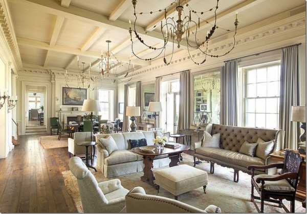 Искусственного света тоже должно быть много. В первую очередь это разнообразные напольные торшеры и настенные бра. Если люстра, то большая и раритетная в гостиной.