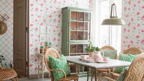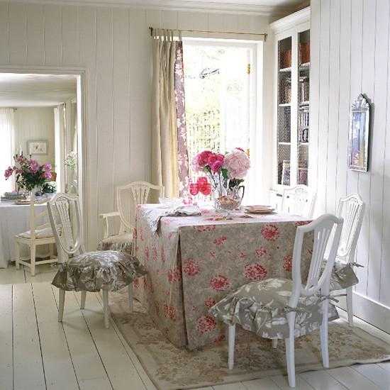 красивая скатерть с цветочным принтом в кухне в стиле прованс