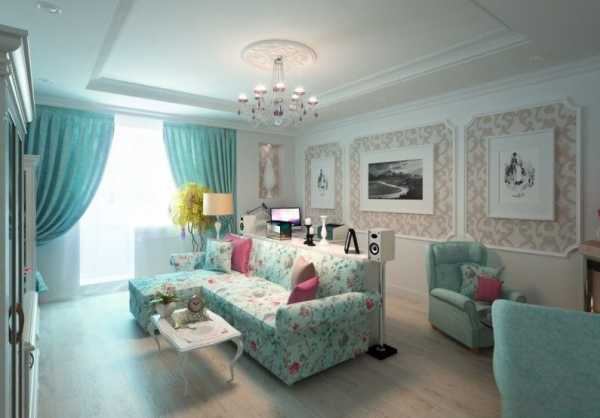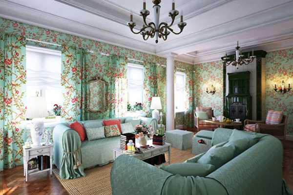 сочетание бледно-зеленого и белого в гостиной, оформленной в стиле прованс