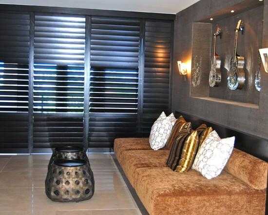 Вертикальные жалюзи и ламели — современный дизайн гостиной