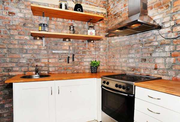 Для отделки фартука более практичным вариантом будет не кирпич, а керамическая плитка, хорошо его имитирующая.