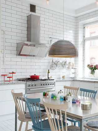 Белый кирпич в интерьере кухни тоже смотрится весьма интересно и гармонично. Этот материал часто используется для облицовки фартука и барной стойки.