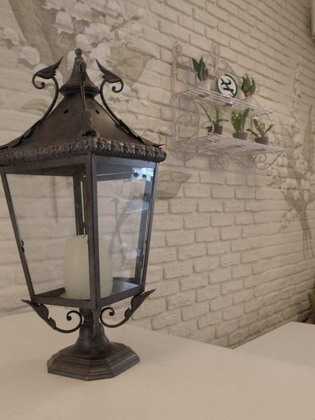 Если вы любитель прованса и состаренных элементов декора, то можно выигрышно это показать на негладкой кирпичной стене.