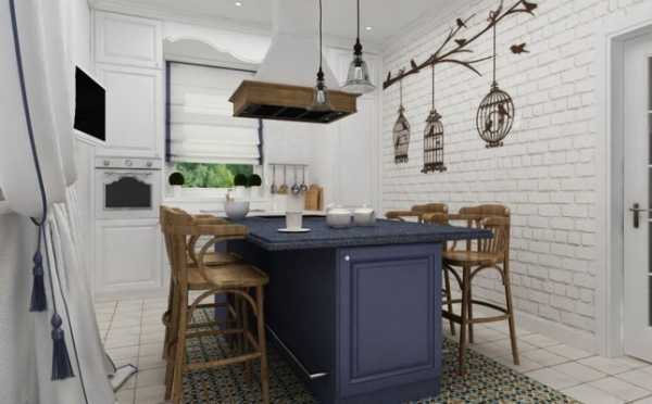 На этих фото белый кирпич в интерьере кухни используется для оформления острова, что придает комнате солидности и законченности: