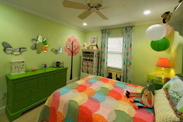 Начиная со второго года жизни, для ребенка требуются разнообразные элементы мебели. Постепенно появляются: новая кровать, столик для игр, места для хранения игрушек. Очень хорошо, если количество комнат в доме позволяет сделать выбор. Для ребенка лучше всего подойдет светлая и теплая комната. Размер особого значения не имеет.