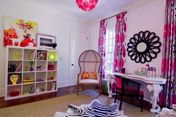 Возможно, родители решать оформить дочери комнату с минимумом вещей, чтобы за комнатой было легче ухаживать. Это не лишено смысла, но даже в такой комнате несколько ярких детских акцентов в виде аксессуаров точно не будут лишними. Мешок-кресло необычной формы, напольная большая и яркая игрушка или ковер с подходящим рисунком удачно завершат обустройство комнаты для девочки.