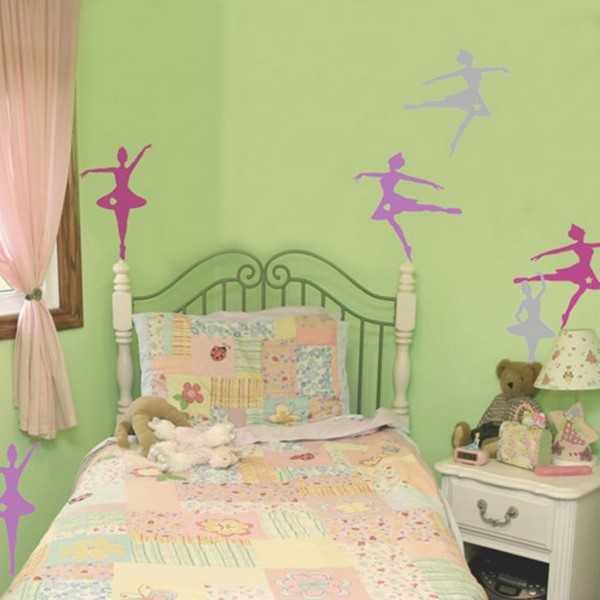 Девочкам с детства нужно прививать чувство прекрасного. Хорошо в этом помогут изящные фигурки и статуэтки, игрушки ручной работы. Поверхность стен можно украсить специальными декоративными наклейками в виде красивых распускающихся цветов, порхающих бабочек или необычных птиц.
