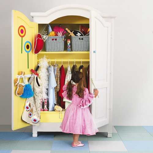 В комнате для девочки шкафы или комоды должны быть разного назначения: один для одежды, а второй для хранения игрушек. Это важно и в санитарных целях, и в воспитательных: это разумно приучать девочку к порядку с самого детства, однако чтобы ожидать от нее каких-либо успехов, необходимо создать подходящие условия. К подбору мебели для ребенка нужно подойти творчески и быть готовым на яркие и необычные варианты мебели. Подойдут коробки и корзины в детской тематике.