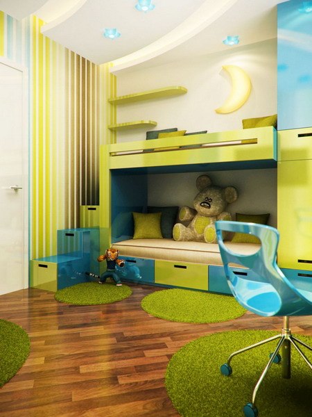 Совет: Дизайн детской для двоих детей зачастую предполагает установку двухъярусной кровати.