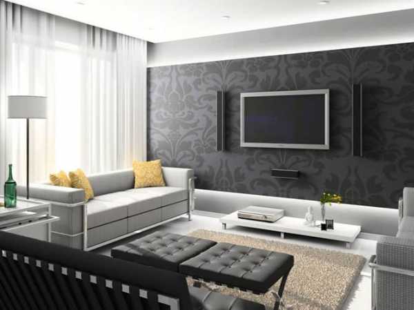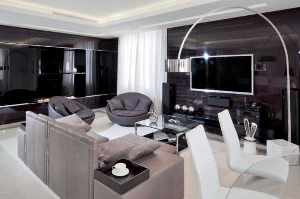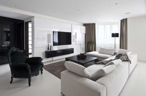 Современный дизайн гостиной в исполнении черного и белого цвета