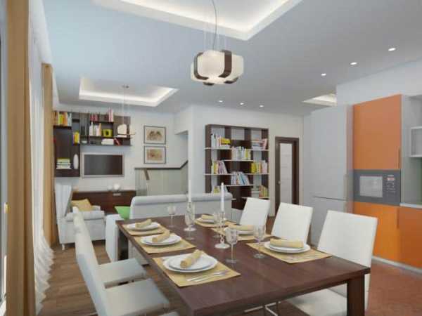 Современный дизайн совмещенной гостиной и кухни