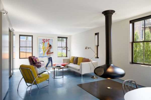Гостиная в стиле лофт прекрасно дополненная чудесным камином