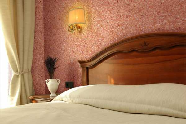 Обивка тканью — интересное решение для спальни, но стоит учитывать, что каждые месяц-два стены придется пылесосить. Особенно быстро пыль накапливается на ворсистой синтетике (бархат, фетр, велюр). Современные текстильные обои, как правило, имеют плотное основание, что облегчает поклейку, но работать с ними все равно достаточно сложно. Излишнее количество клея, впитываясь в ткань, может навсегда оставить на ней некрасивые пятна. Преимуществом такого варианта отделки можно считать роскошный внешний вид и неплохую звукоизоляцию (в случае применения обоев на поролоновой подкладке).