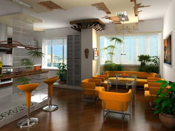 Необходимо разделить комнату на несколько зон. Например, спальню от ванной или же кухню от гостиной. Разделив комнату, надо соблюдать один и тот же дизайн проект, все должно смотреться органично.