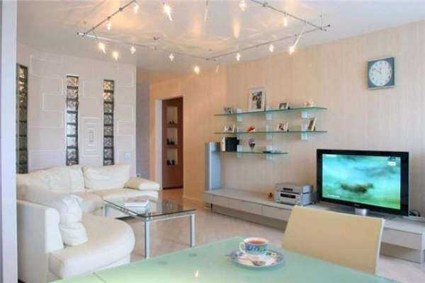 Лучше всего — установка точечных источников света. Они визуально расширяют помещение;