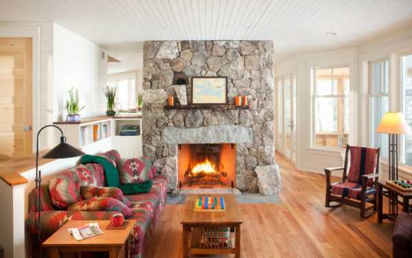 Популярность каминов настоящих или декоративных в гостиных комнатах не утихает. Атмосфера комнаты с камином приобретает особый уют и роскошь. Прекрасным способом обыграть этот элемент также является камень.