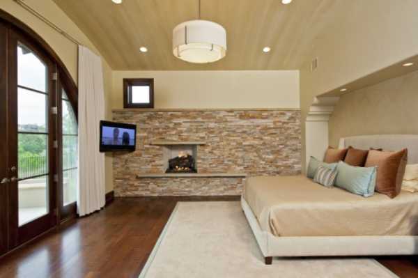 Фото: отделка ниши декоративным камнем в интерьере спальни