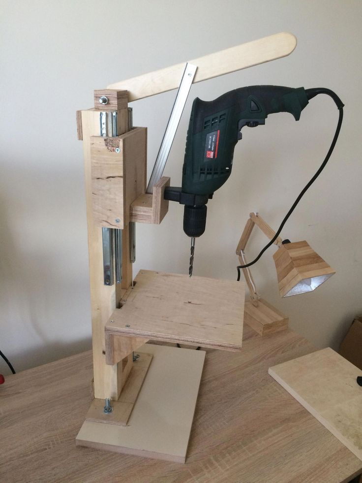 Поставив их точно под прямым углом, зафиксировать к столешнице косынку и стойку. Корпус инструмента надежно закрепить на основании.