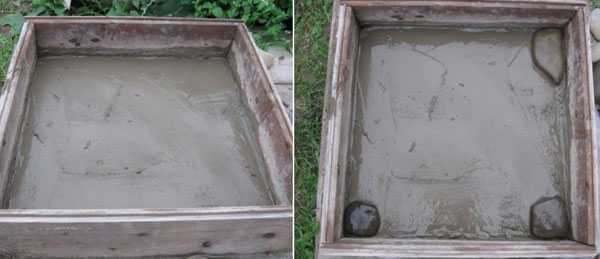 Заливка бетонным раствором и раскладка камней
