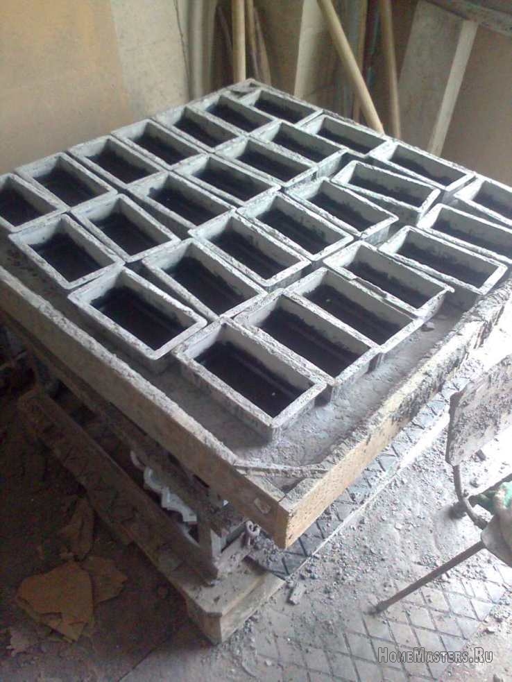 Лишний бетон нужно удалить шпателем, а если смесь сильно проседает в формах, то нужно добавить бетонный раствор и продолжить вибрацию.