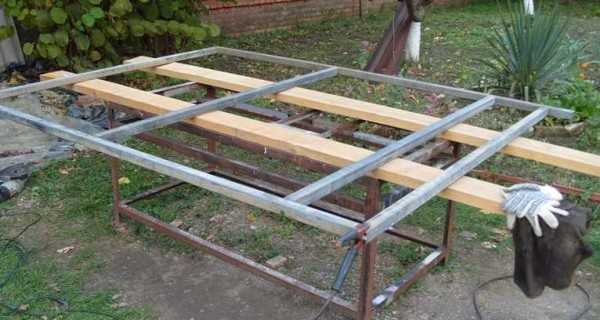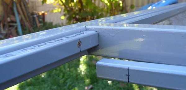 1. В качестве опорных конструкций может использоваться трубы или профиль 2,5 мм диаметром от 60 мм и выше. Использование уголка не рекомендуется: он не способен обеспечить конструкции необходимую жесткость. Для поперечных перекладин профиль может быть чуть уже: до 30 мм.