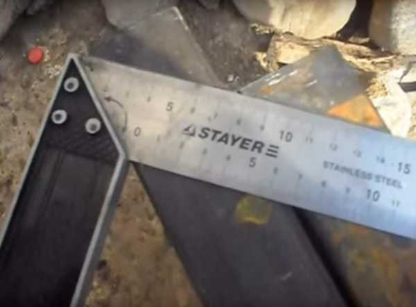 Отрезав нужные составляющие, свариваем их в одну конструкцию, тщательно проверяя внешний или внутренний угол с помощью угольника.