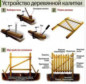 Итак, изготовление калитки из дерева происходит по следующей схеме: